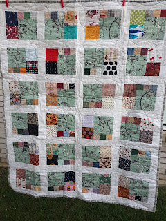 My quilt group (Telequilters) had a challenge whereby we all made the same 3 yard pattern, but each using different fabrics.